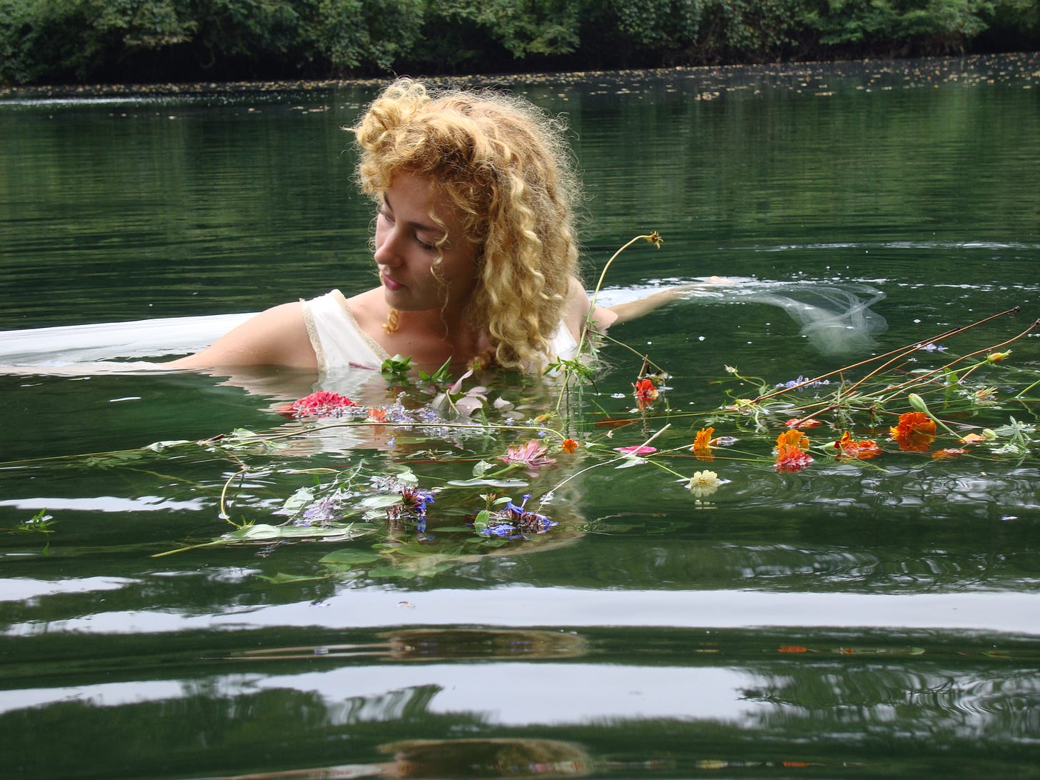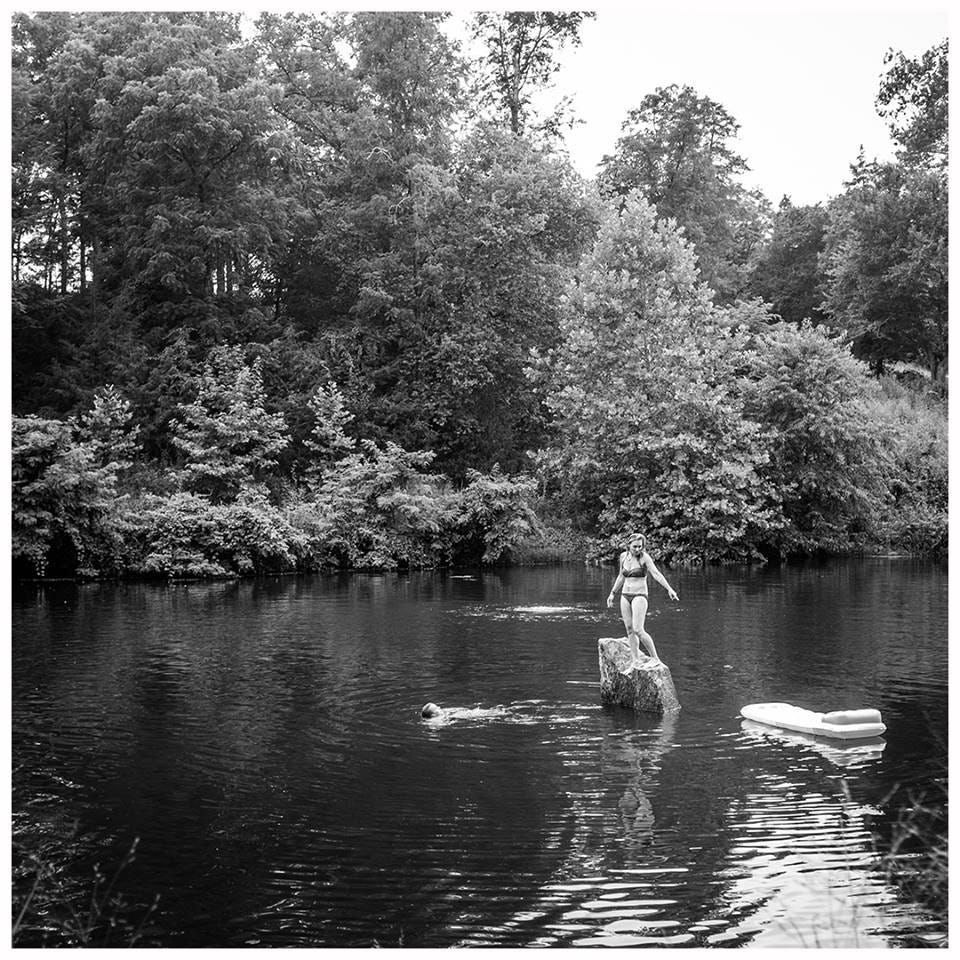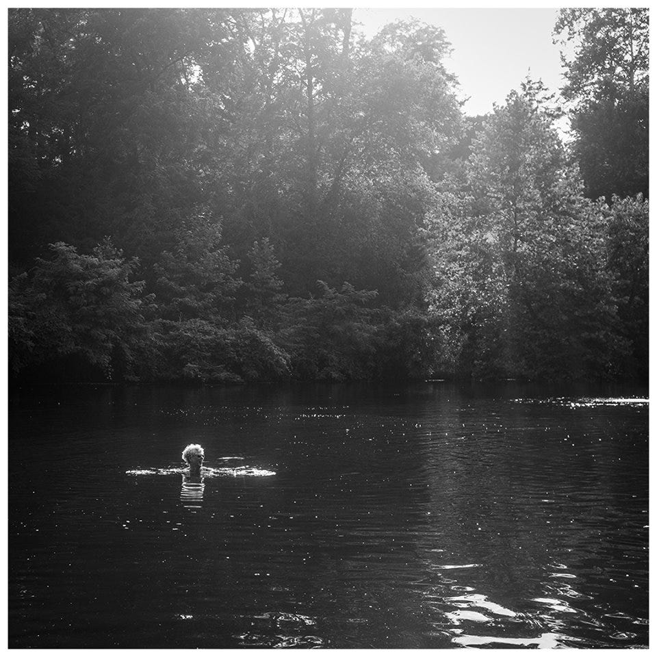 Finally after several years of work, I slipped into the pond to swim. All the trepidation over a squishy bottom and the feel of water plants alongside my footsteps vanishing when I fully submerge and remember from childhood that swimming in clean natural water is like swimming in silk. Nice splash. Ahhhh