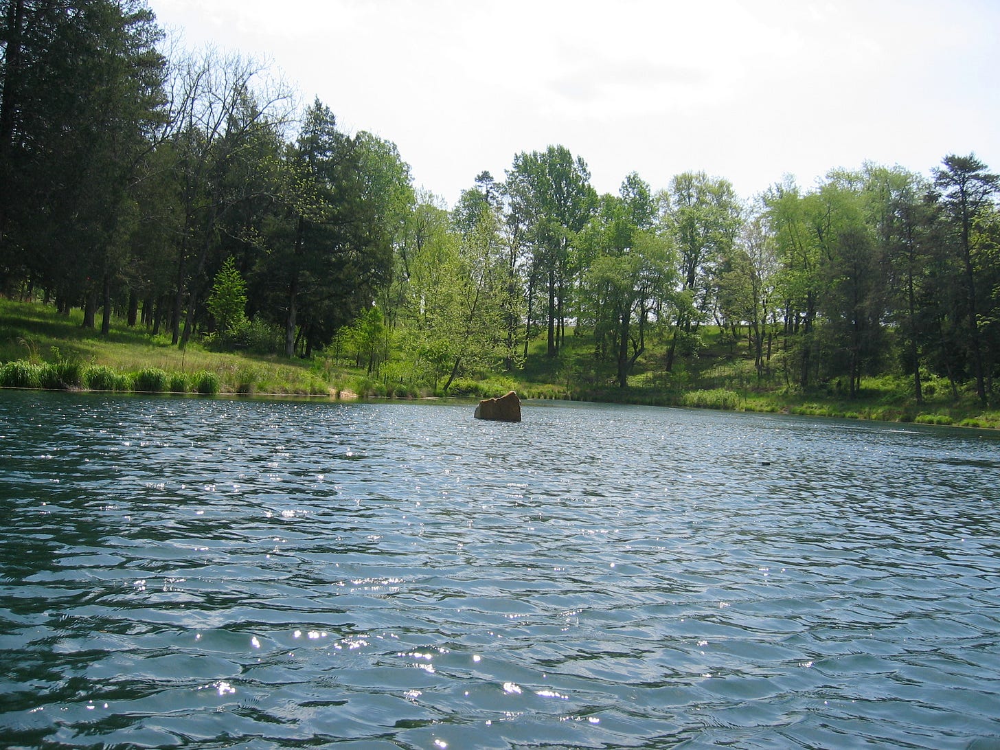 And then, we planted fish. Pouring in buckets of twisting silver babies. Large mouth bass. Catfish. Bluegill, which is another indicator species, a kind of canary in the mine shaft. When the bluegill are thriving, the water is clean. The bluegill are thriving and truth be told, they sometimes nibble. Notably, bluegill can swim backwards.